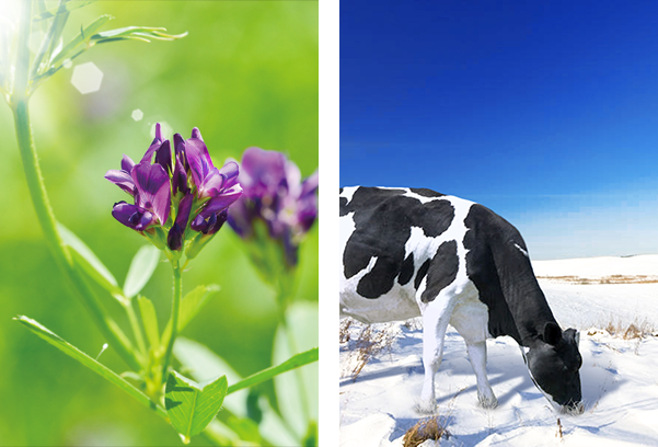 北緯45°的充足光照,讓這里的植被擁有了高含量的植物粗蛋白;溫帶大陸性氣候雨熱同期的生長(zhǎng)優(yōu)勢(shì),使得奶牛最愛(ài)的紫花苜蓿牧草生長(zhǎng)得十分茂盛;