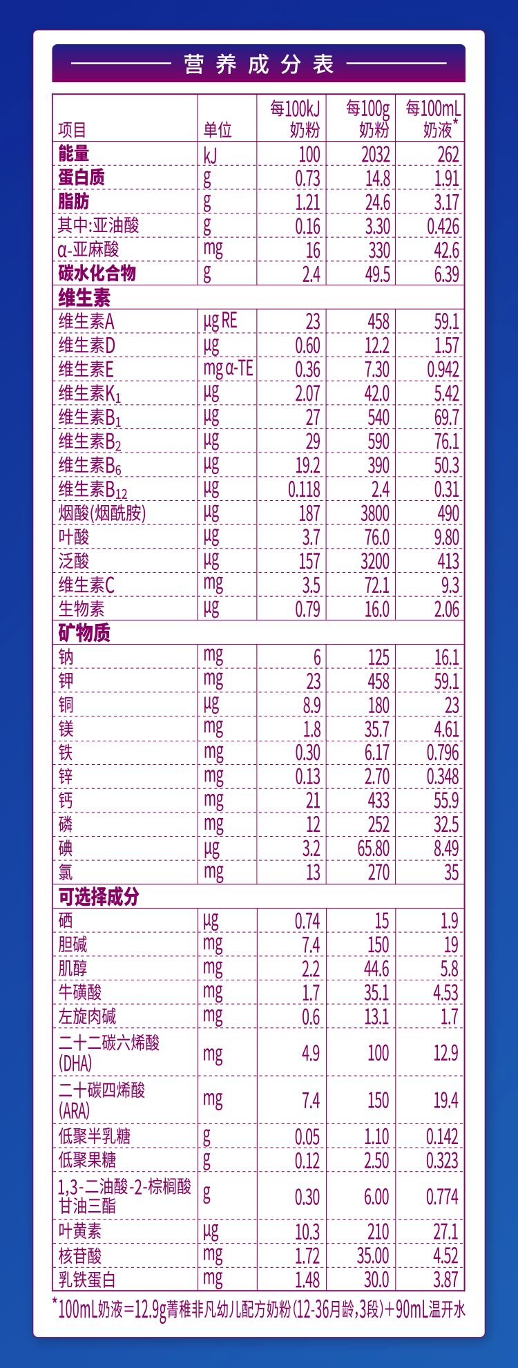 營養(yǎng)成分表