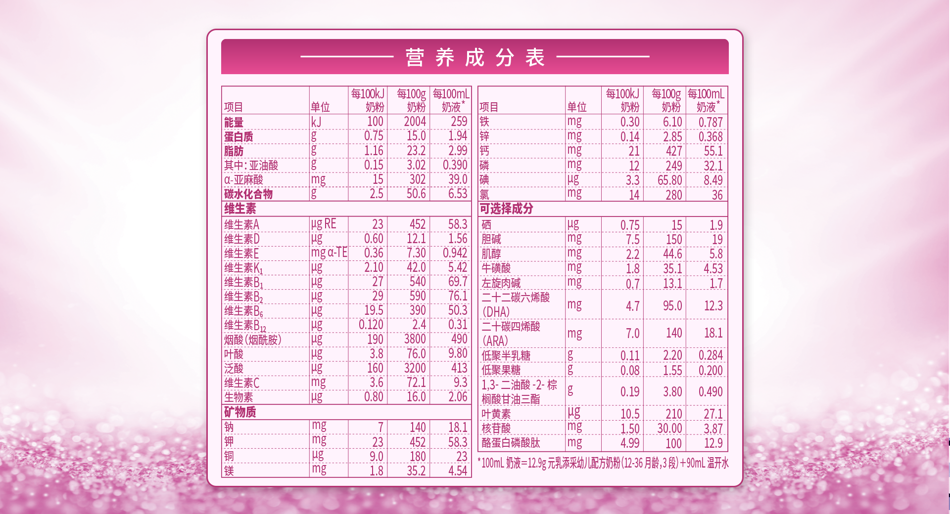 營養(yǎng)成分表